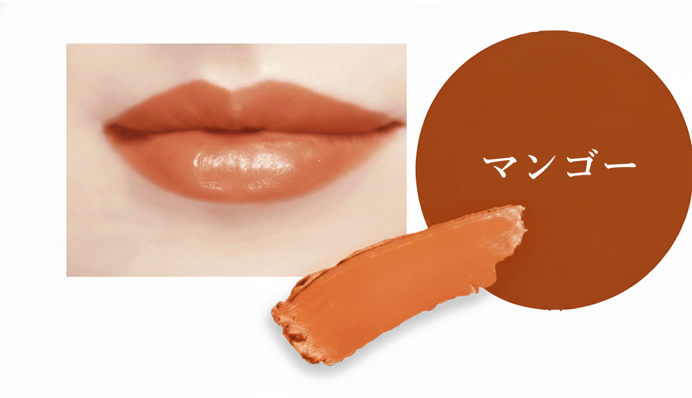 【マンゴー】あたたかみのあるマンゴーカラー。くすみがちな唇を明るく見せながら、軽やかでやさしい印象に。